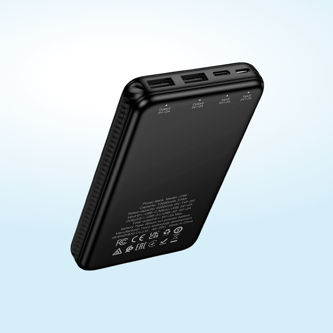 Power bank Hoco J165 Honey de 10000mAh con pantalla LED, ideal para recargas seguras y uso diario.