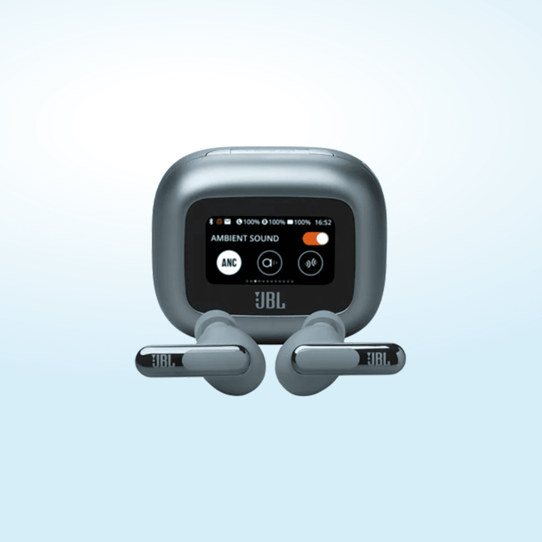 📱 علبة الشحن فيها شاشة لمس ذكية تقدر تتحكم بالصوت والـ ANC بدون فتح الهاتف.