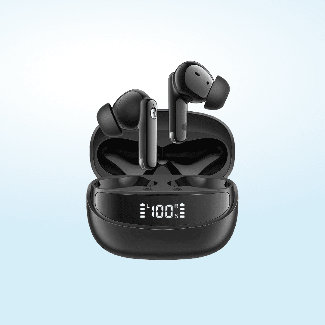 30H Playtime + Digital Display Case – Up to 8 hours on a single charge, extended to 30 hours with charging case; real-time LED battery display.