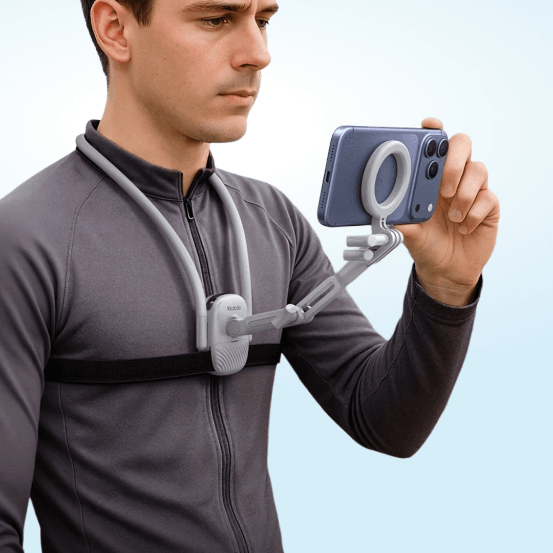 Neck Phone Holder POV/Vlog Neck Mount with Phone Clip, Hands Free Phone Neck Holder Selfie Mount Video Recording for iPhone 15 14 Pro and All Phones for Camera GoPro Insta360